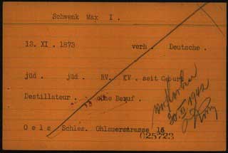 karta Maxa Schenka ze spisu ludności, zawodów i przedsiębiorstw z dnia 17 maja 1939 r.