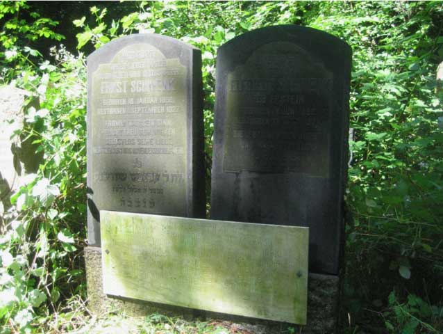 11. Grób Ernsta i Elfriede Schwenków na cmentarzu żydowskim w Berlinie-Weissensee, poniżej tablica pamiątkowa wymieniająca członków rodziny Schwenk, którzy zostali zamordowani w trakcie Holokaustu. Zdjęcia grobu oraz członków rodziny Schwenk pochodzą z zasobów prywatnych Roberta Geislera |