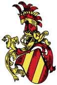 Na lewym rysunku pokazane kolory. W polu czerwonym dwie z³ote listwy w lewo skos. klejnot: Na czerwonych skrzyd³ach dwie z³ote listwy.Na prawym rysunku pokazano