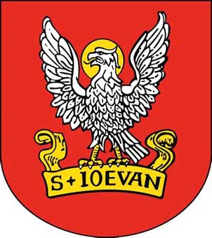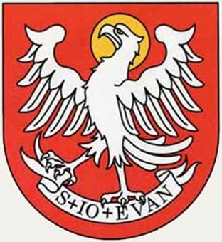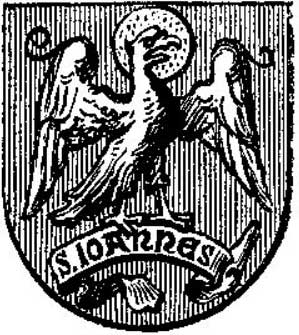 Biały orzeł św. Jana trzyma białą wstęgę z napisanym imieniem św. Jana.