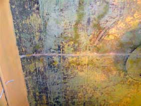 Spod wtórnych zamalowań i zniszczeń (pod przewód elektryczny) widoczne są dawne interesujące malowidła. Fot. P. Pawłowski |