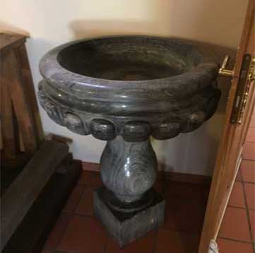 Marmurowa chrzcielnica w kościele w Bukowiu. Fot. Piotr Michalak |