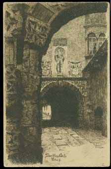 Poniższa (lewa) grafika pokazuje dziedziniec zamku przed 1892 r. tj. ze starym rozmieszczeniem wjazdu. Natomiast na prawej grafice widoczna jest klatka schodowa, o której wiemy jeszcze niewiele.