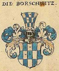 Drugi z herbów należy najpewniej do rodu Borschnitz. Ród ten był związany z księstwem oleśnickim jeszcze w okresie piastowskim (nosili nazwisko Borsnicz). Pełnili funkcje doradcze na dworze książęcym. W okresie nas interesującym, członkowie rodu byli właścicielami Borowej, Stępina i dwóch innych miejscowości. Czyli byli szlachtą znaczącą. Jeszcze nie udało sie ustalić jakie funkcje pełnili na dworze książęcym Podiebradów.
