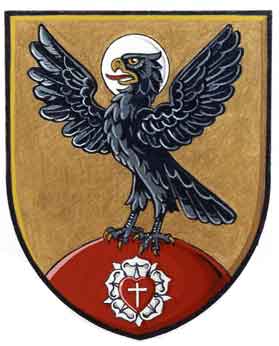 Po przejęciu kościoła zamkowego przez protestantów w 1538 r. zmieniono wtedy patrona kościoła na św. Jana Chrzciciela. Wtedy już wcześniejszy łaciński napis S - IOEVAN (Sanctus Joannes Evangelista) był przedstawiany w herbie w j. niemieckim - jako S - IOHANES, S - IOHANNES, ST - IOHANNES. Ale godłem herbu pozostał orzeł św. Jana Ewangelisty.