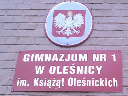 W 2006 r. Rada Miasta nadala Gimnazjum nr 1 imię Książąt Oleśnickich, co widać na poniższych ilustracjach