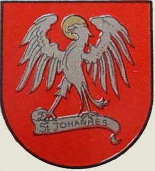 Z powyższych ilustracji może wynikać, że artysta malujący ten herb w latach 50-ych mógł - wzorować się na wcześniej używanym herbie - zapewne tym pokazanym z prawej, a później jeszcze został on poprawiony do obecnego stanu. Orzeł św. Jana jest cały biały (co odpowiada wielu ilustracjom w księgach z XV-XVI w.), stoi na wstędze, która ma kolor biały, z czarnym napisem S+ Johannes |