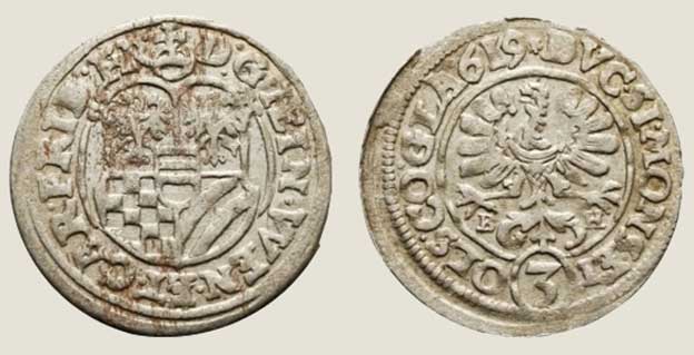 3 krajcary z 1708 r. Wardejn CVL. Bito je w 1708-1709
