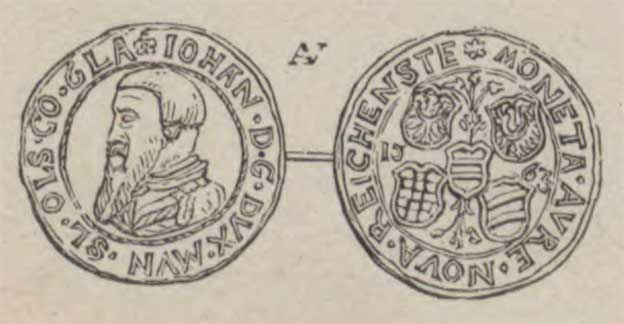 Jan V, wybijał w latach 1506-1509 w nyskiej mennicy grosze, talary oraz dukaty.