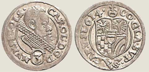 Czy to są pierwsze monety mincerza N-B wybite dla Karola I. Nie posiadają daty. Wg Kunkera 1522 r. Pierwsza z nich z błędem w literze N.