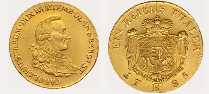 W latach 1741-1743 bito w Wirtembergii fenigi i krajcary, na których książę tytułowany był równiez księciem oleśnickim