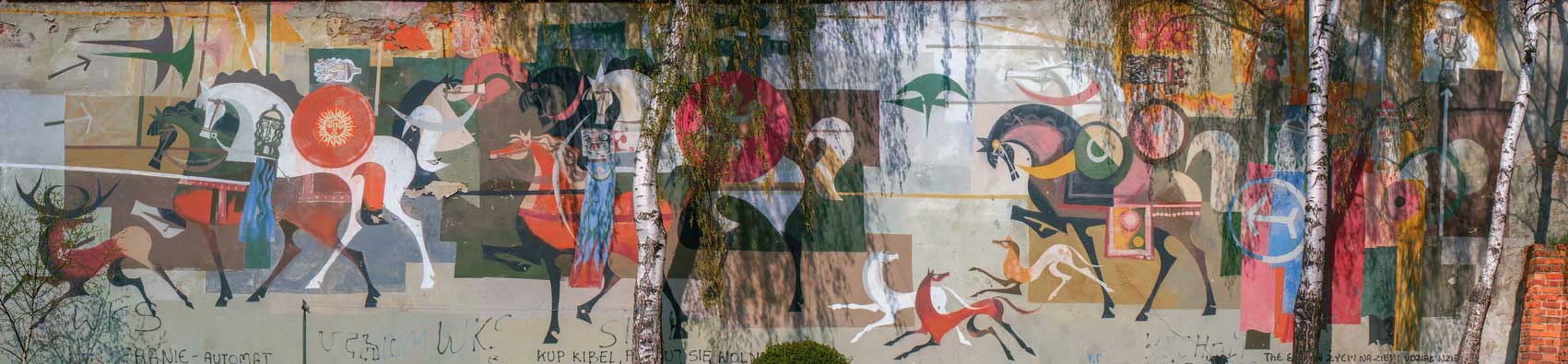 Mural istnieje, ale od kilku lat jest przysłonięty reklamami.
