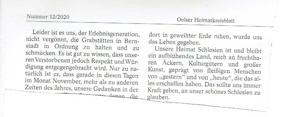| 30.12.20 | Paweł Szczegodziński znalazł i przysłał ciekawą informację, że żona znanego oleśnickiego lekarza Władysława Tobiczyka podczas ich zamieszkiwania w Kosowie Huculskim (Ukraina) uratowała przed śmiercią wielu Polaków. | ||