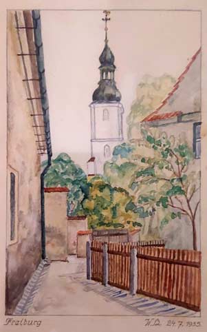 Akwarela 1935 r. Kościół w Swiebodzicach |