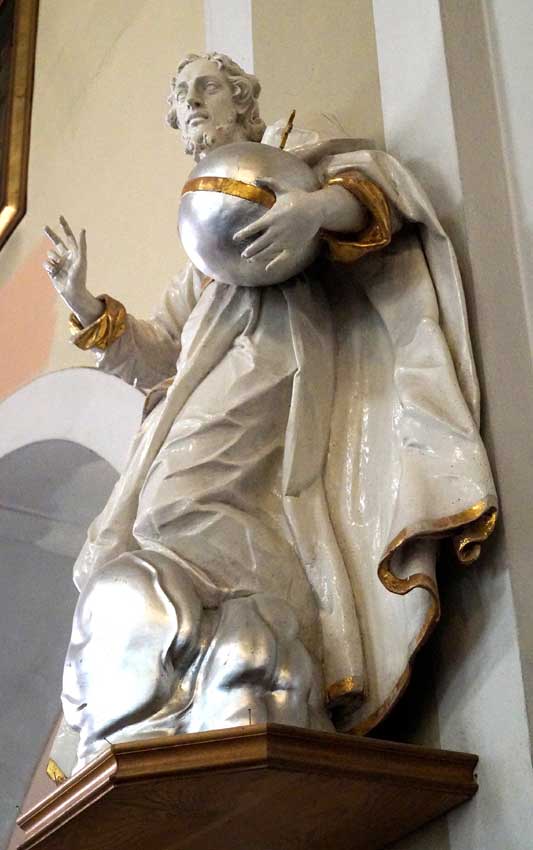 Dzisiaj stwierdzam, że jest nią Chrystus Salvator idący w przestworzach Franza Josepha Mangoldta, ze zwieńczenia ambony kościoła św. Trójcy (obecnie w kościele w Trzciance). Można odnieść wrażenie, że na chwilę się zatrzymał i jednym kolanem przyklęknął na chmurze, dźwigając kulę. Mistrzowsko wyrzeźbiona figura Chrystusa, o łagodnej, mądrej twarzy, z pięknym gestem prawej dłoni, w typowym dla epoki kontarpoście. Polichromowana, z niewielkimi złoceniami. Wyraźnie słychać szelest jej rozwianej draperii. Srebrna chmura, na której przykląkł Chrystus, to kosmiczny barokowy stwór, który do dzisiaj nam towarzyszy. Chcę wierzyć, że dzieło mistrza Mangoldta wróci kiedyś z Trzcianki do Oleśnicy, czego nam wszystkim życzyć należy.