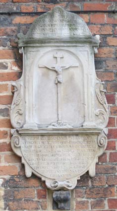 Płaskorzeźba z ok. 1614 r. przedstawiająca dwa putta podtrzymujące mitrę książęcą nad kartuszem, zawierającym werset biblijny