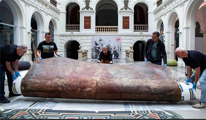 Obraz Alegoria Muzyki przygotowywany do transportu.