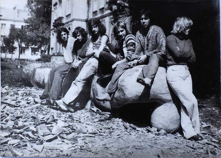 Trzeci od lewej - Zbigniew Podurgiel, jako pierwszy - Stanisław Klupa. Tylko oni dwaj parają się dalej rzeźbiarstwem.
