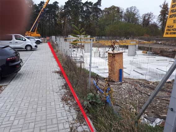 Budowane budynki w przybliżeniu są równoległe i bliskie czerwonej linii.