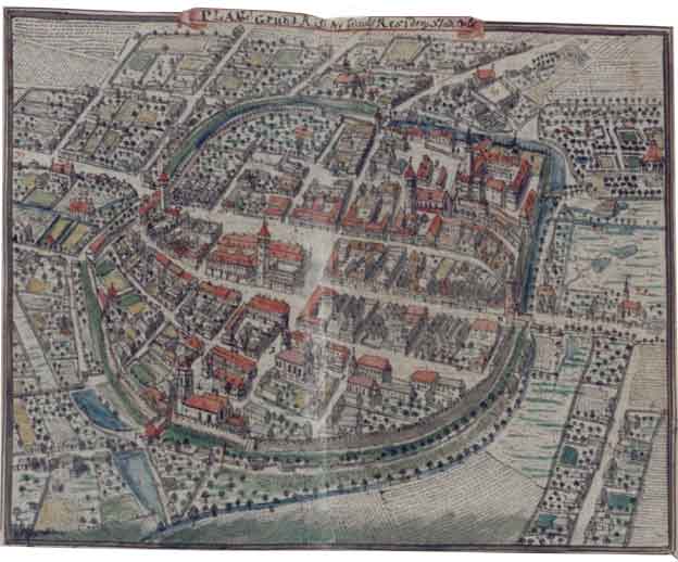 jest tu rzeczywisty plan, czyli rzut poziomy układu urbanistycznego. Między