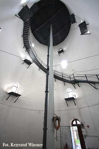 Na zdjęciu części stożkowej widoczne są schody i trzy rzędy okienek z niewielkimi podestami. Pod jednym z okienek widać było drabinkę klamrową (klamry umocowane w ścianę), która zapewne umożliwiała wejście na podest. Ale wymagało to dużej sprawności psycho-fizycznej.