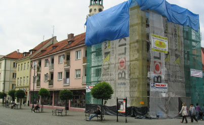 Pierzeja zachodnio-południowa z dwoma kamieniczkami z pierzei północnej.