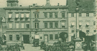Pierzeja wschodnio-południowa. Widok z boku z ok. 1904 r. i widok od frontu z ok.1913 r. W tym okresie nie wykonano żadnych przebudów |