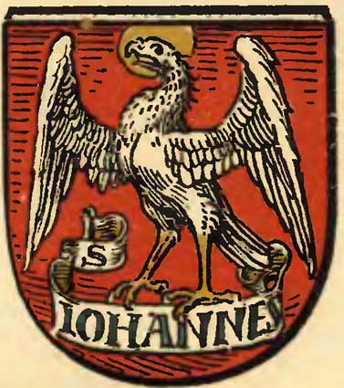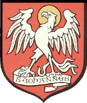Biały orzeł św. Jana trzyma białą wstęgę z napisanym imieniem św. Jana.