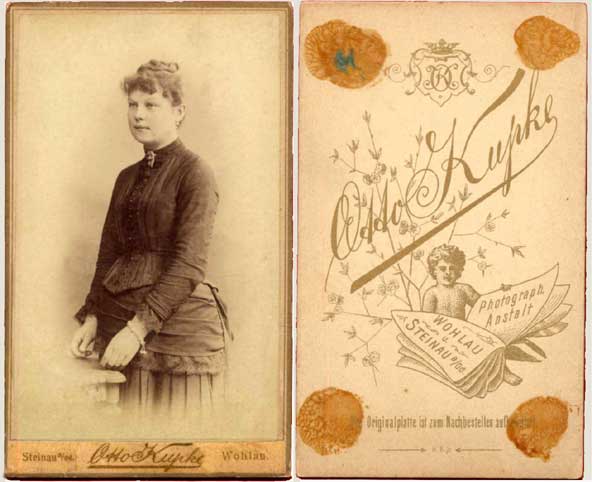 Współautor książki Bogusław Szybkowski kupił na e-bay fotografię z atelier Kastnera & Siewczyńskiego (o tym atelier piszemy na stronie 56). Wykonano ją w ich wrocławskim atelier. Na fotografiach wykonywanych w Oleśnicy zapewne dodawano adres atelier oleśnickiego.