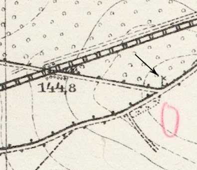 (lecz po drugiej stronie drogi prowadzącej do budki dróżnika (?)). |