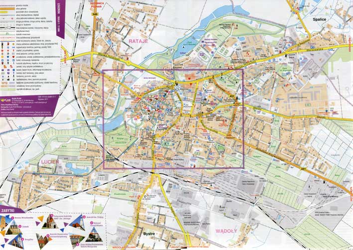 Z tylnej strony można zobaczyć plan miasta z dobrze widzialnymi nazwami ulic i miejscem rozmieszczenia pokazanych wcześniej zabytków.