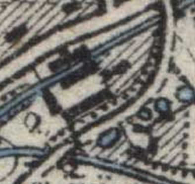 Fragment mapy Messtischblatt 4769 z 1886 r. Jeszcze widoczne są znaczące zabudowania Papier-Fabrik, bez znaku koła wodnego.